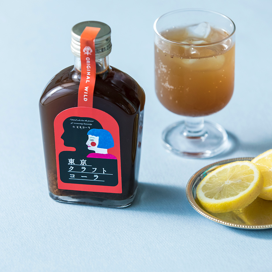 横顔とそのシルエットを描いたグラフィックのラベルが印象的な「東京クラフトコーラ」。「ともコーラ」で知られる「TOMO's CRAFT」が作り手のクラフトコーラの素で、愛媛県産の無農薬ネーブルオレンジ、岩城島産の無農薬レモン、防腐剤不使用のライムに、コーラナッツ、クローブ、シナモン、山椒など、ハーブやスパイスをたっぷりと使った一品。蓋を開けるだけでスパイシーな香りがあふれます。