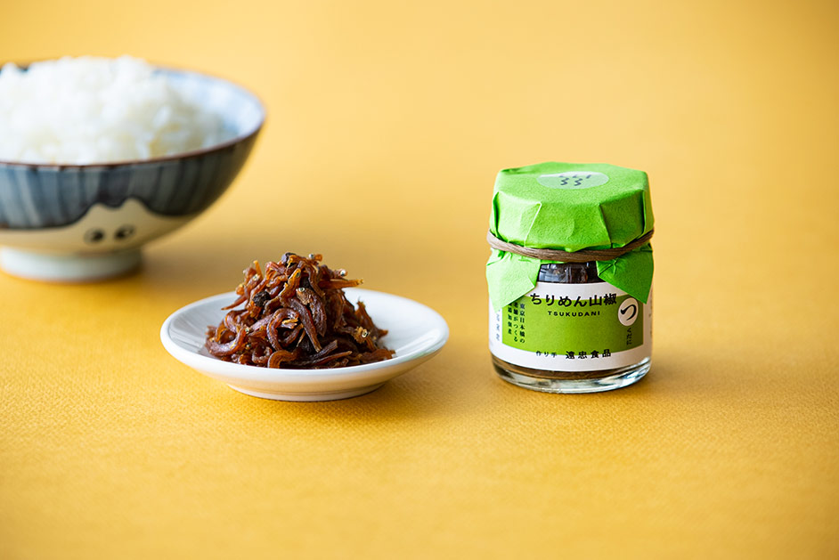 東京・日本橋にある大正2年創業の老舗佃煮屋、遠忠食品が作る「国産ちりめん山椒」。広島県産の音戸ちりめん、山椒の実を醤油とともに、昔からの伝統の直火釜でしっとりやわらかく炊き上げた国産・無添加の佃煮です。
