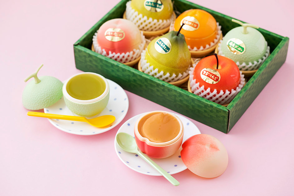 あっと驚いて、写真も撮りたくなって……。帰省時やおうちパーティーの手土産にイチオシなのが、京都のお菓子メーカーが手がける「京寿楽庵のフルーツアラモード」。化粧箱を開けると、まるで本物のようなパッケージ入りのゼリーがズラリ。高級フルーツのような佇まいはもちろん、味も◎。「すりおろしたり、ピューレにしたりと、国産のフルーツをたっぷりと使用し、さらに果肉も入った贅沢なゼリーです。幅広い年齢層に喜んでいただける商品ですので、帰省の時の手土産におすすめです!」(幸地さん)。