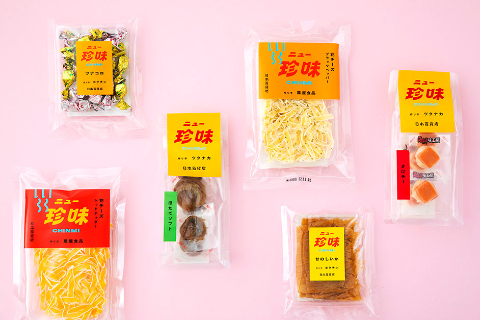 日本百貨店 バイヤー日暮さん「最近はおつまみも素材志向だったり高級志向だったりするものが多いですが、珍味は珍味、もう少し気楽に食べようよという思いから、ちょっと昭和っぽくてチープな雰囲気のデザインにしました。食べきれる少量タイプなので、ちょっとつまみたい時にぜひ」