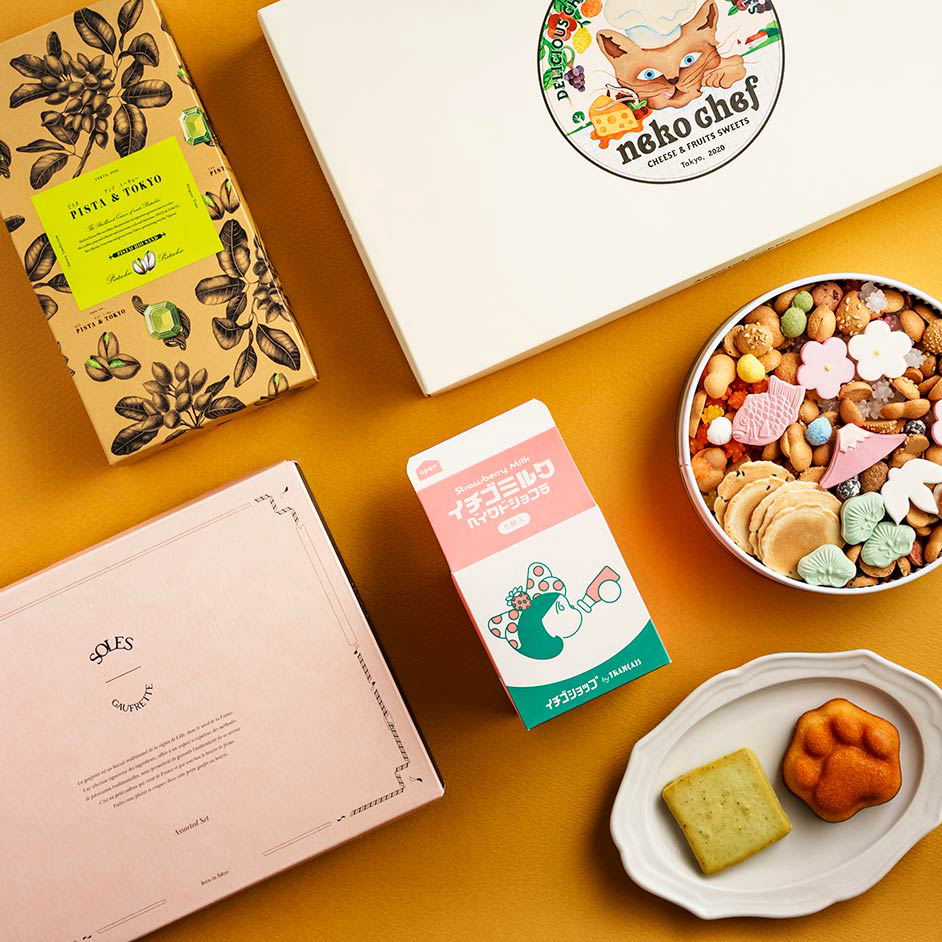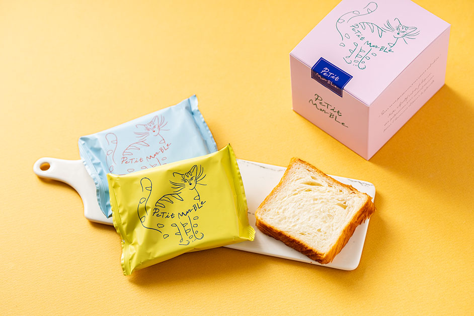 京都のマーブルデニッシュ専門店「グランマーブル」が手掛けた「PeTit MarBLe」は、プラントベースのデニッシュ専門店。ショップは東京ギフトパレット店のみの展開で特別感あり、ナチュラル志向の人にもぴったりの東京土産です。「プティデニッシュ アソート」は、プレーン、ショコラ、祇園辻利抹茶あん、マロン(善兵衛栗)の4種が楽しめるボックス仕立て。ほっとするやさしい風味が広がり、デザイン会社・れもんらいふが手がけたかわいい猫のイラストとベビーカラーのパッケージにも癒されます。