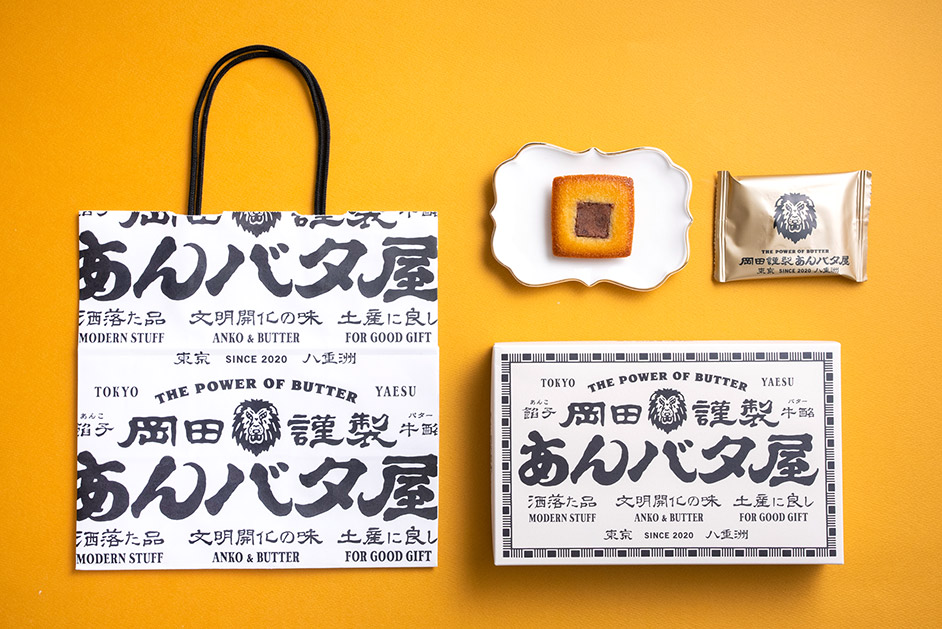 日持ちのするお土産なら「岡田謹製 あんバタフィナンシェ」がおすすめ。しっとり生地を口に入れた瞬間に広がるバターの濃厚なうまみと粒あんは絶妙なコンビネーションで、記憶に残る味わい。レトロでいて力強い、風格たっぷりのパッケージも強烈なインパクト。