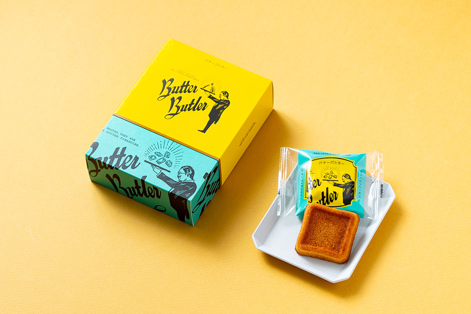 東京駅構内でショッパーを持つ人たちを多く見かけ、認知度が急上昇している「Butter Butler(バターバトラー)」。ショップでダントツ人気の「バターフィナンシェ」は、ヨーロッパ産発酵バターとフランス産ゲラントの塩を使用し、きつね色に焼き上げられた一品。メープルシロップが染み込み、外はカリッ、中はしっとりの幸せ食感。広がる豊かなバターの香りにうっとりときめく、バター好きに贈りたいお土産です。パッケージに描かれた、ブランド名にちなんだ執事のイラストもおしゃれです。