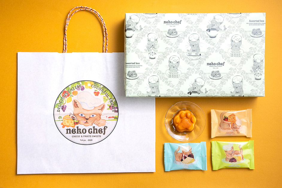 森にたたずむチーズ工房を住みかにする猫・ネコシェフはお菓子作りが大好き。「ネコシェフ」はそんなストーリーを背景にしたチーズと果実のお菓子ブランド。