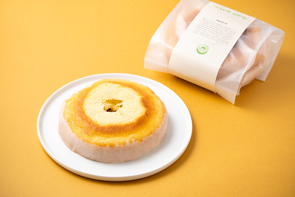 滋賀県発祥のパティスリー「クラブハリエ」が、東京駅で展開する「CLUB HARIE e-challenge」。ecoやearthをテーマに、フードロスや環境配慮にチャレンジしている新業態のショップです。東京駅のお土産として人気なのが「MIMI レギュラー」。これまで商品化されなかったバームクーヘンの両端を「MIMI」として販売。バームクーヘンといえば柔らかな食感が特徴ですが、こちらは火がよく通りしっかりとした食感を楽しむことができる! ミニマルで美しい包装もセンスを感じさせ、 贈り物にもぴったり。