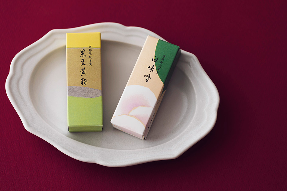 目上の人や和菓子好きな人には、「とらや」の京都限定「小形羊羹」2種をお土産に。京都産の黒大豆と大鶴大豆のきな粉を使用した香ばしい風味の「黒豆黄粉」。天保元年創業の本田味噌本店の西京白味噌を使い、まろやかな味わいに仕上げた「白味噌」。どちらも奥深く上品なおいしさを楽しめます。