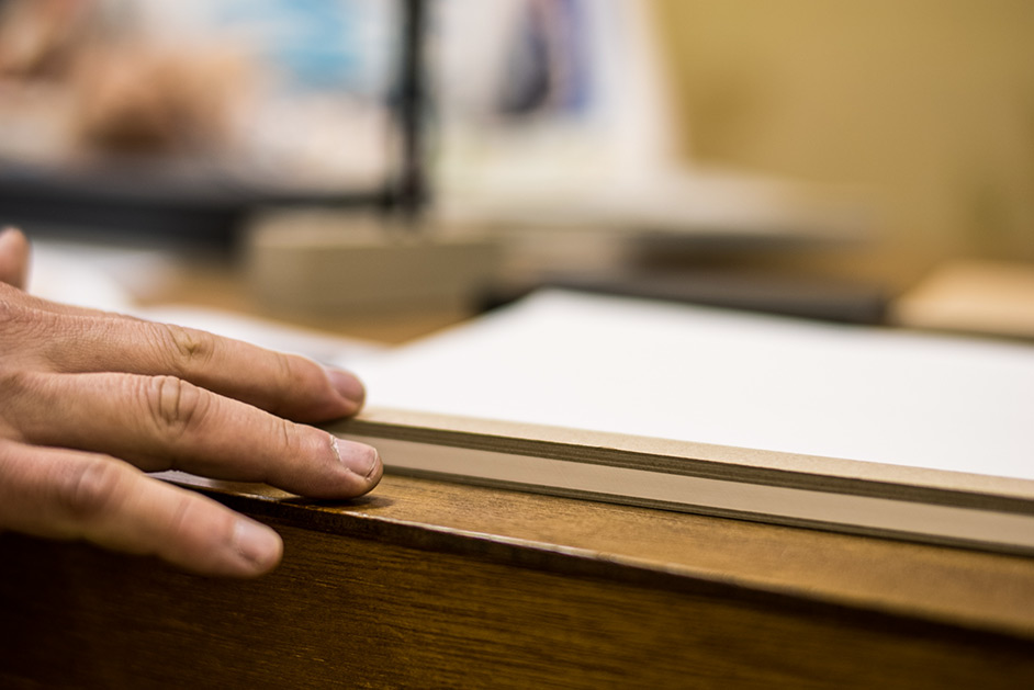 伊藤 そうですね、特に黒のアイテムを断裁機で仕上げるときは、側面に傷がつかないよう、必ず包丁を研磨したてのものに替え、細心の注意を払って作業しています。