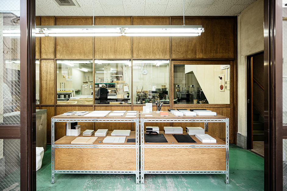 伊藤 実は以前から、海外のバイヤーやユーザーの方が、買いたいと直接訪ねてくることがあったので、ここをお店にしたら、お客様とよりコミュニケーションがとれるのではと考えていたんです。今回も典型プロジェクトの方々に相談して、外から機械や工場の様子が見えるような内装と、ここに合う什器をオリジナルで製作してもらいました。