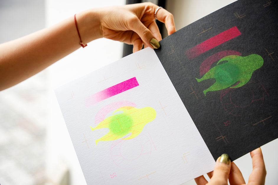 リソグラフの魅力はインキの発色と混色。透け感も美しい