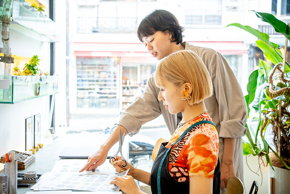 植物に囲まれた空間で、活版印刷やリソグラフなどの「アナログ印刷」の相談や発注が可能なカフェショップ。独自に開発した「特殊印刷」では、刷るたびに色が変化する「ランダム印刷」や、一枚の原稿におけるインキの厚みを変化させて色の濃淡を表現する「ゴースト印刷」なども人気。定期的に開催しているワークショップでは、子連れや学生、印刷好き、プロまで、幅広い層から高い注目を集めている。