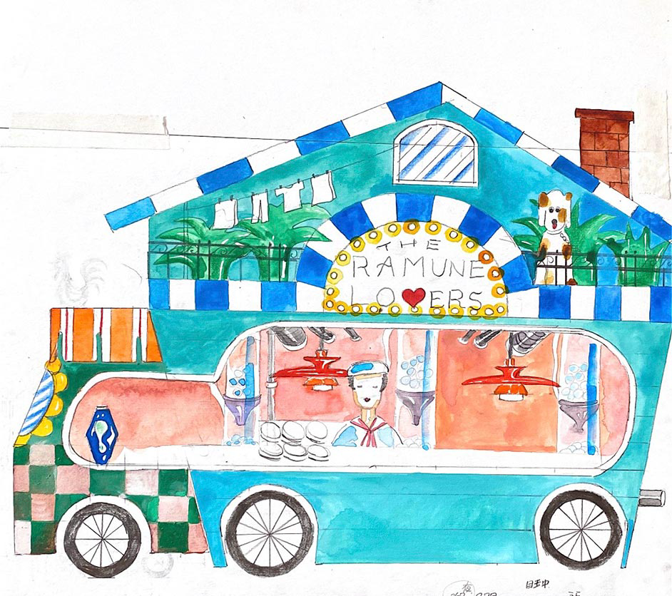 店舗のラバーズ号は「トラフ建築設計事務所」との協働なのですが、デザインは世界各地をめぐる移動式のKIOSUKUをイメージして描いてもらった、さぶさんのイラストが原案。イラストををおおもとに店舗の全体館を描き、設計図に落とし込む過程などを楽しんでいただきました。商品、パッケージ、店舗……ブランド丸ごとで“ラムネラバーズによる、ポジティブでハッピーなムーブメント”が表現できたのではないかと思っています。
