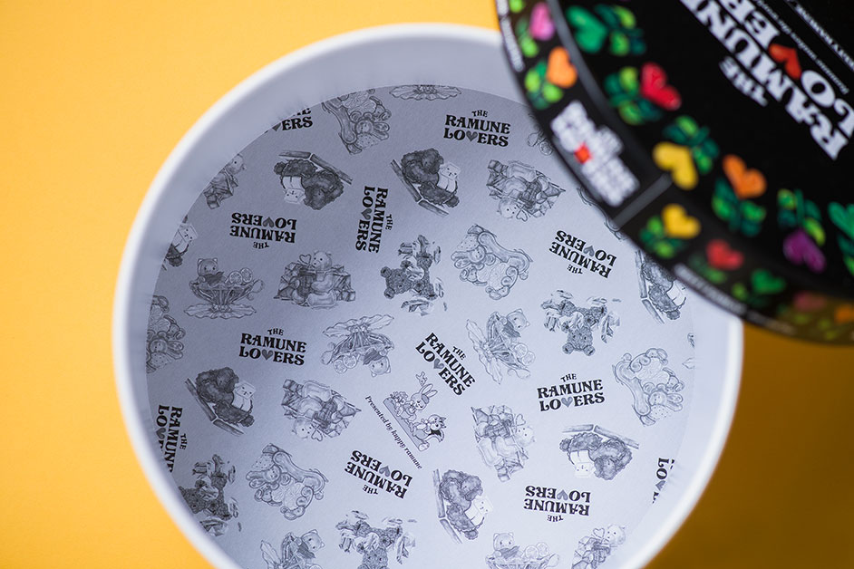 藤木 さて、デザイン面でクッピーラムネを意識したかですが、クッピーラムネには商品の顔といえるクッピーとラムという認知度の高いウサギとリスのキャラクターがいます。でもTHE RAMUNE LOVERS(ザ・ラムネラバーズ)は、クッピーラムネとはまったく違うラインのブランドです。差別化を図って露出しないことになりましたが、古くからのファンをがっかりさせたくないので、遊びで取り入れることに。「アソートBox」の箱の中にクッピーとラムがワンポイントであしらわれていますので、ぜひ見つけてみてください!