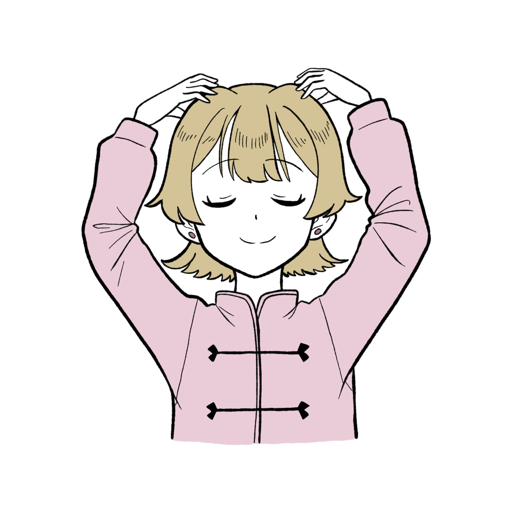 | 指の腹や手のひらを使って頭を叩く。全体を満遍なくトントンと刺激する。 |