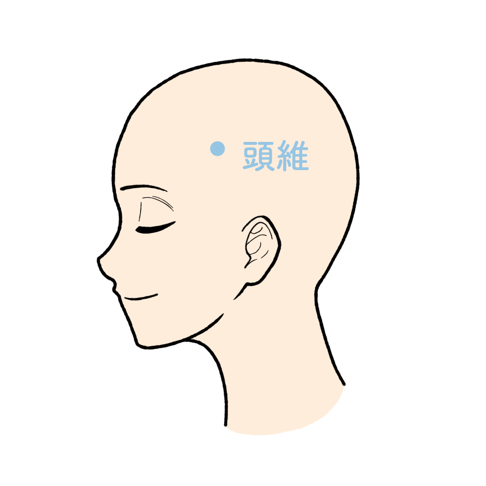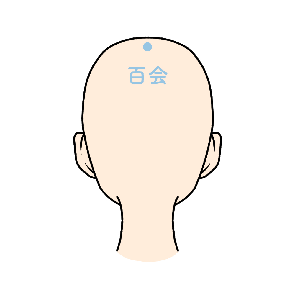 | 両耳の一番高いところを結んだ頭頂部の真ん中。百会を刺激することで全身の気血の巡りがよくなるとされているため、「万能のツボ」とも言われている。頭痛や肩こりにも。 |