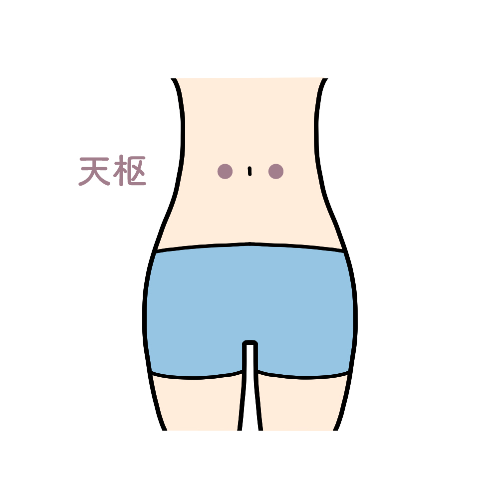 | 9)再び「天枢(てんすう)」のツボを重ねた指先で3回押す。 |