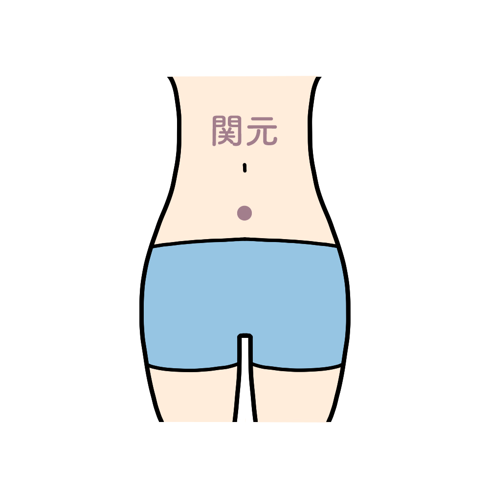 | 8)へそから指4本分下にある「関元(かんげん)」のツボを重ねた指先で3回押す。 |