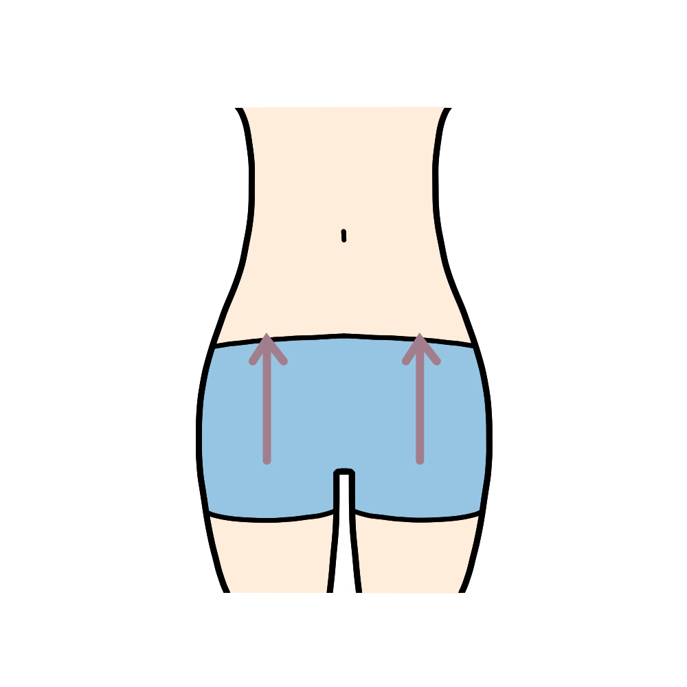 | 11)左右の鼠蹊部に両手のひらを当て、下から上に向かって8回さする。 |