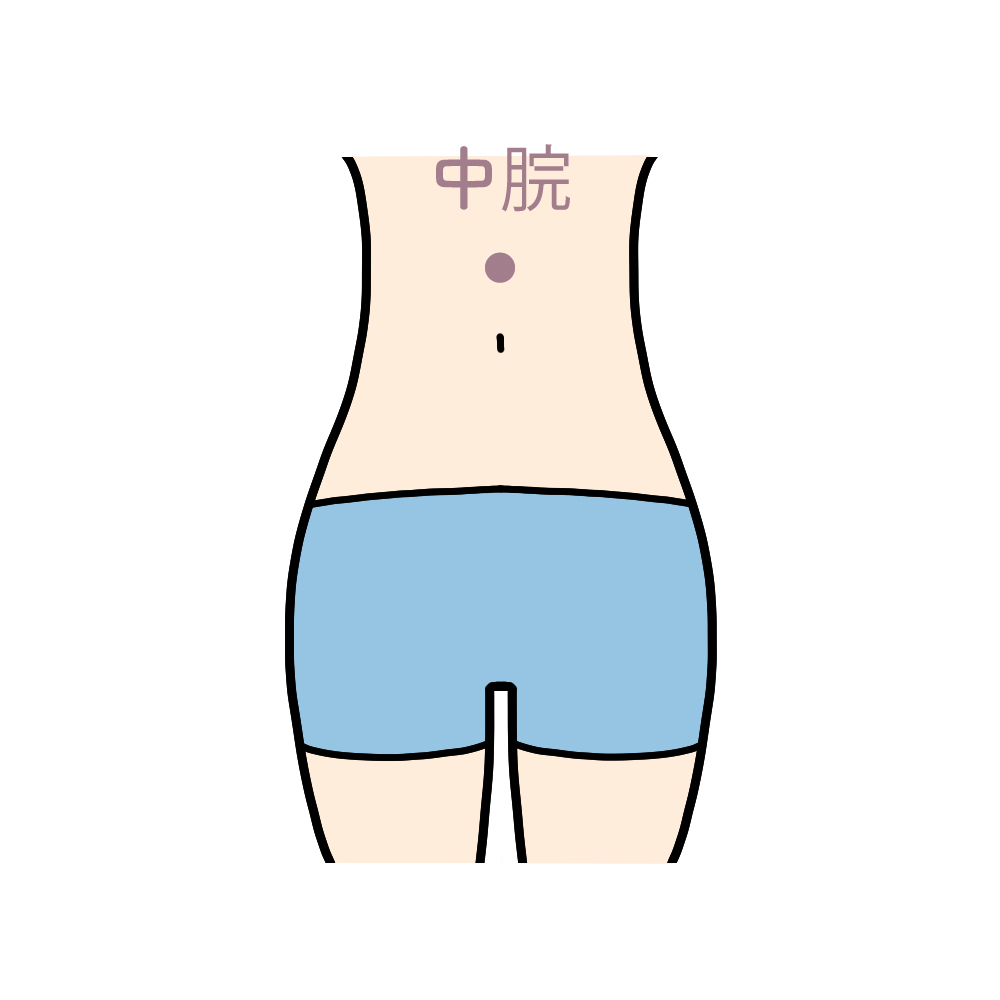 | 6)鳩尾とへその中間に当たる「中脘(ちゅうかん)」のツボに両手の指先を重ねて3回押す。 |
