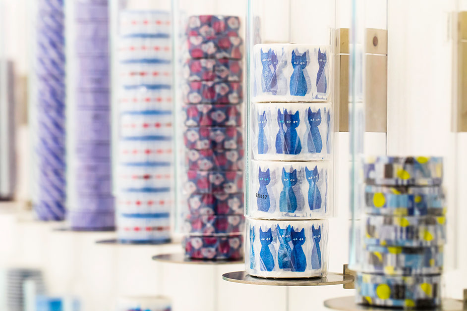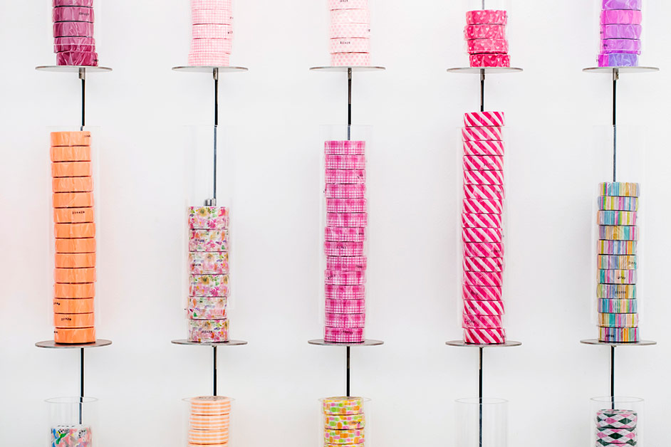 色とりどりのマステが壁一面に!mtの直営ショップ - mt「mtマスキングテープ」「mt wrap」を使用