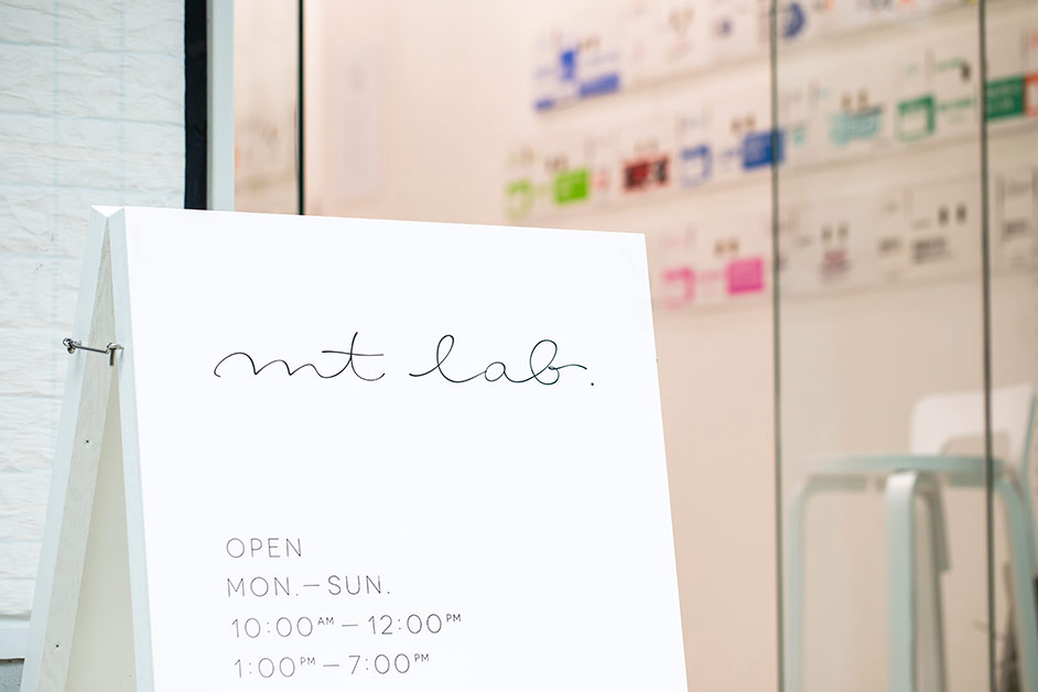 カモ井加工紙のマスキングテープブランド「mt」の直営ショップ「mt lab. TOKYO」。全国の文具店やバラエティショップに流通している人気アイテムをはじめ、デザイナーやイラストレーターとコラボレーションしたマステや、「こんなマステがあったらおもしろい」という自由な発想から生まれた新作マステまで、豊富にそろうマスキングテープの専門店です。壁面には色とりどりのマステが並び、眺めているだけでも心躍るような空間に。