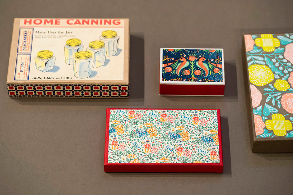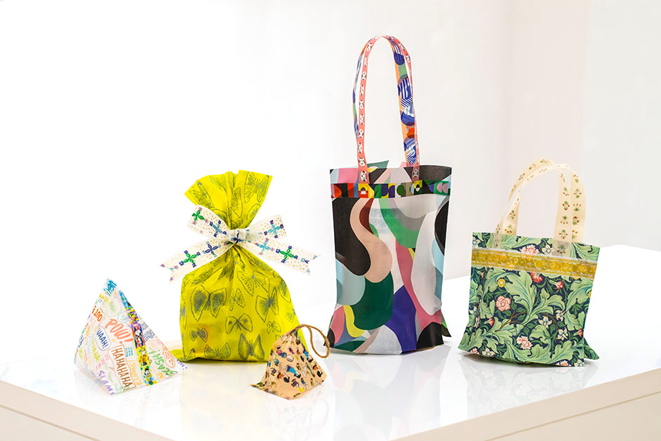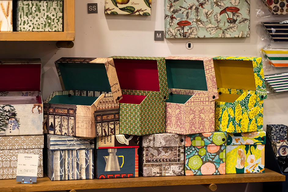 ラッピングをせずに、そのまま渡してもかわいい箱物アイテムはギフトにぴったり。名刺箱などの小さいものから、陶器が保存できる頑丈な箱、ビスが付いて開閉しやすい収納箱や丸型のハットボックスなど、バリエーション豊か。図案や模様の種類も多く、プレゼントする相手に合わせて選ぶのも楽しそう。大きなサイズの包装紙も販売しているので、本格的なラッピングに挑戦したい方にもおすすめです。