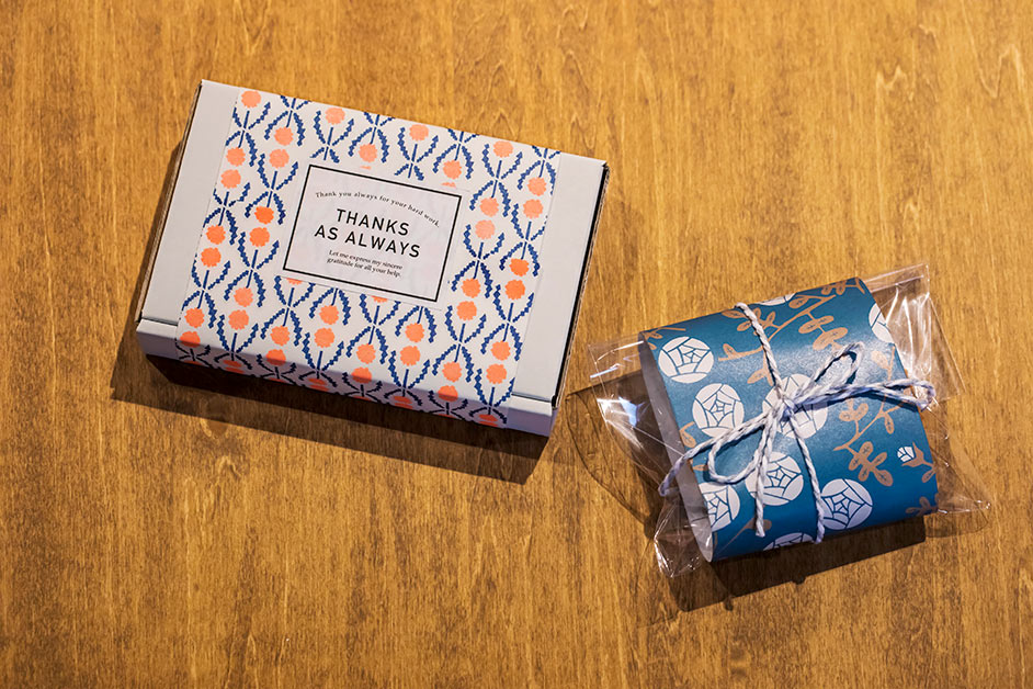 世界中のかわいいペーパーにときめく包装紙の専門店 - REGARO PAPIRO「オリジナルデザインペーパー(包装紙)」を使用