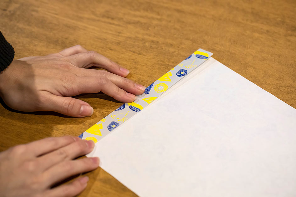 4)折り曲げた部分に、同じ長さにカットしたマスキングテープを貼る
