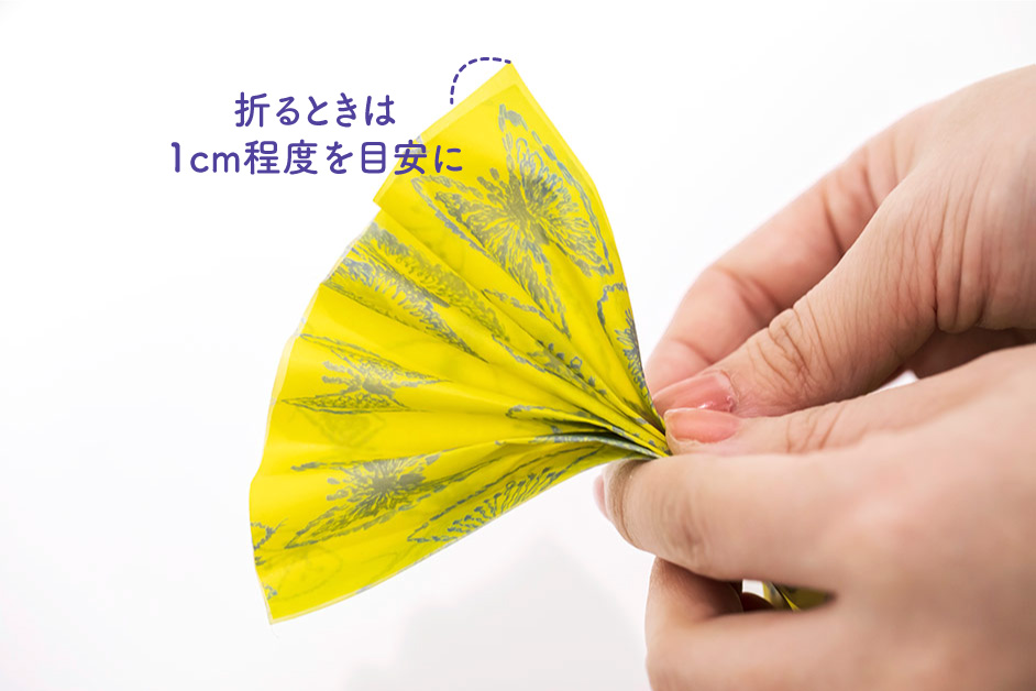 7)開いている部分をジャバラ状に1cm程度ずつ折っていく