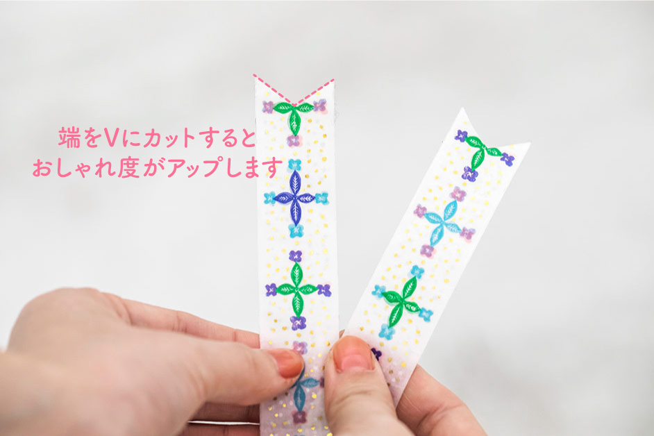 3)両端をV字型に飾り切りするとよりリボンらしくなっておしゃれに!