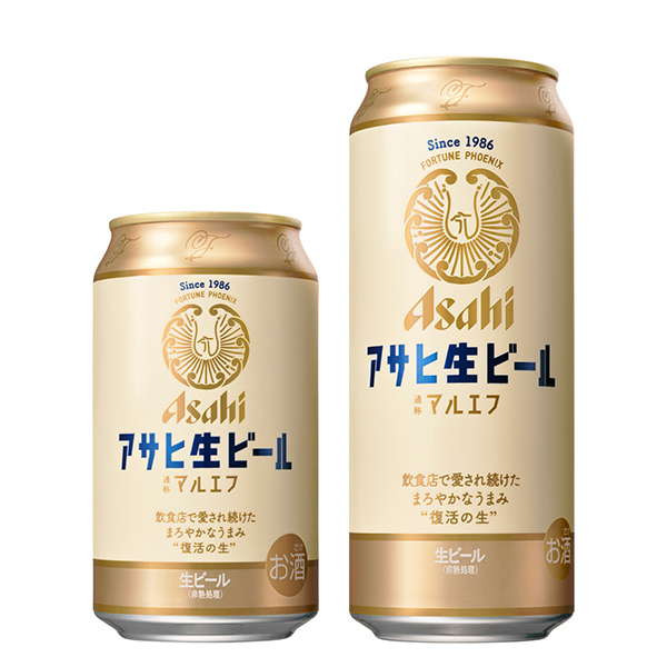マルエフの愛称で親しまれ、1993年以降は飲食店で樽生のみ展開をしてきた『アサヒ生ビール』の缶が復活。2021年9月より発売を開始した。マルエフという呼び名は、商品を開発する際、社内の呼称である開発記号として名付けられ、幸運の不死鳥(FORTUNE