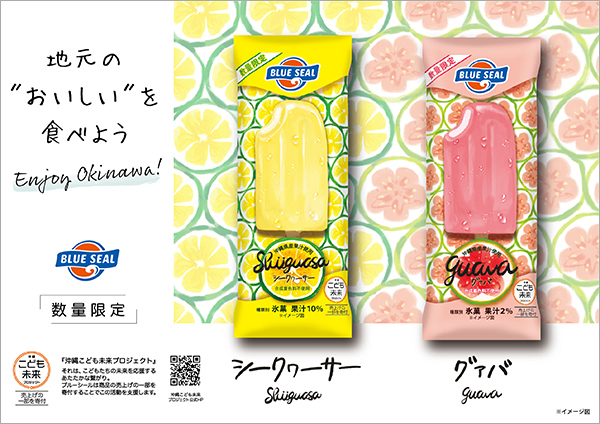 沖縄のアイスブランド「ブルーシール」が、アイスバー『ブルーシールシークヮーサー』『ブルーシールグァバ』を数量限定で発売。沖縄の方言で“助け合い”という意味を持つ「ゆいまーる」をコンセプトに、地元沖縄県産の原料を使い、売上の一部を「沖縄こども未来プロジェクト」へ寄付。さらに、沖縄県出身のイラストレーター福地明乃を起用している。みずみずしいアイスバー、フルーツの断面図を描き、フレーバーの風味を想像させる爽やかなパッケージに。