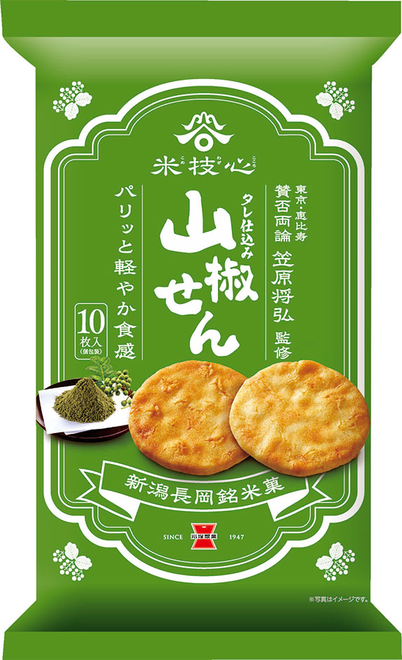 新潟の米菓メーカーの岩塚製菓より、人気日本料理店「賛否両論」の店主・笠原将弘が監修した『10枚 山椒せん』『10枚 だしせん』『75g 鬼ひび 梅昆布味』が新発売。日本のお米の風味が感じられる生地に合うよう味付けの監修がされた、ちょっと贅沢な米菓シリーズとなっている。商品パッケージは、それぞれの味である「山椒」「鰹」「梅」を連想させるカラーリングに。食欲をそそる写真を配置しながらも、落ち着きや上品さがあり大人らしさを感じさせるデザインだ。アートディレクション、デザインともに、新潟のデザイン会社Frameが手がけている。