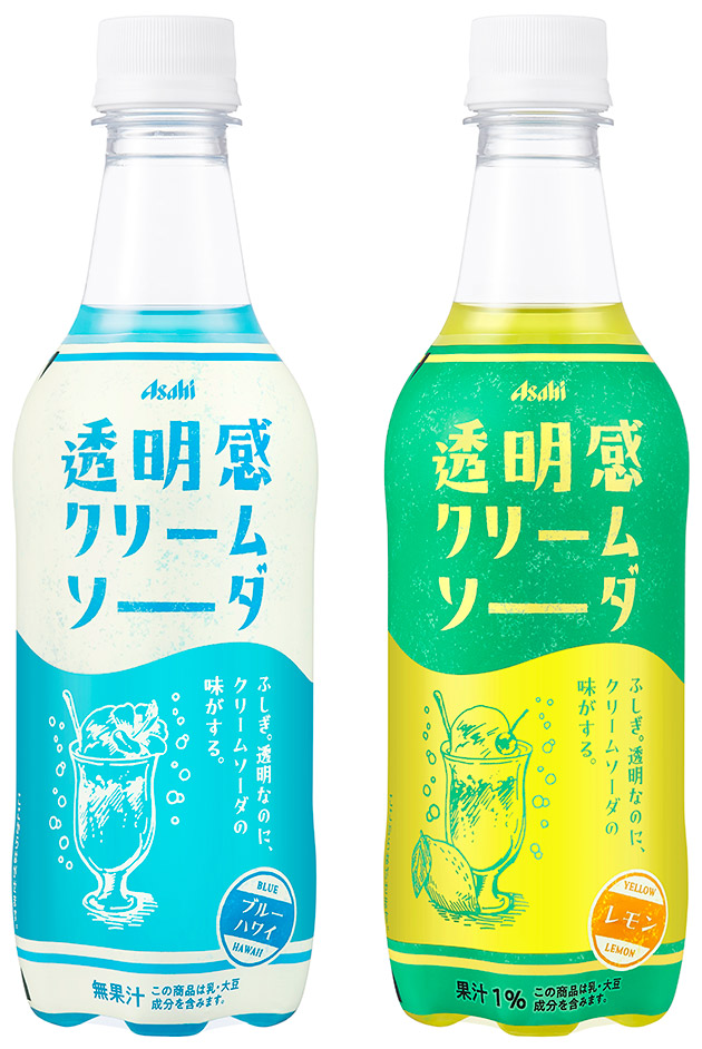 アサヒ飲料と体験型ティーンズフェス「超十代」のメンバーが共同開発した『透明感クリームソーダ』が、全国のセブン-イレブンで限定発売中。ブルーハワイ味、レモン味と2種のフレーバーがラインナップし、ふたつを混ぜ合わせると緑色に変化するユニークな乳性炭酸飲料だ。アートディレクション、デザインともに、デザイン会社のGKグラフィックスが担当。ロゴや縦書きの説明文、クリームソーダのイラストからは懐かしさ、飲料の色がわかる透明のパッケージや色使いには新しさがあり、ニューレトロな趣のパッケージに。
