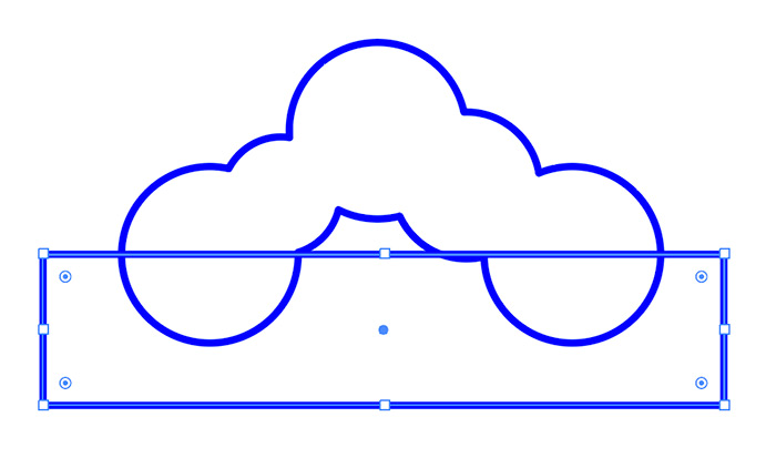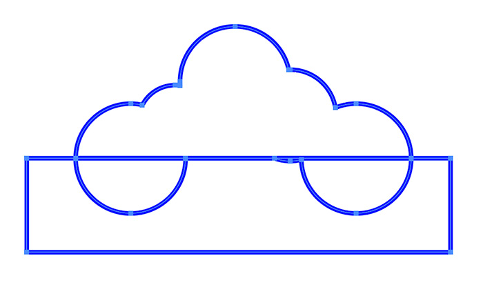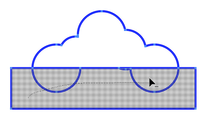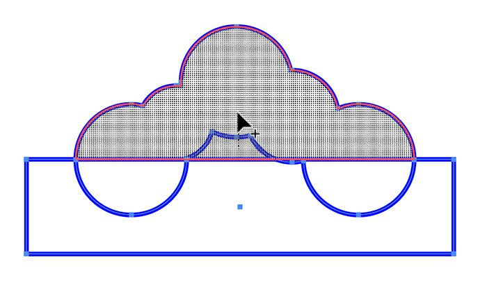 長方形ツールでその下端が少し隠れるように長方形を描いたら(図59)、これらのパーツをすべて選択してシェイプ形成ツールでモコモコと長方形の隙間部分をドラッグして合体させる(図60)(図61)。さらにoptionキー(Macの場合。WindowsではAltキー)を押しながらシェイプ形成ツールで長方形の内側をドラッグして削除する(図62)(図63)。