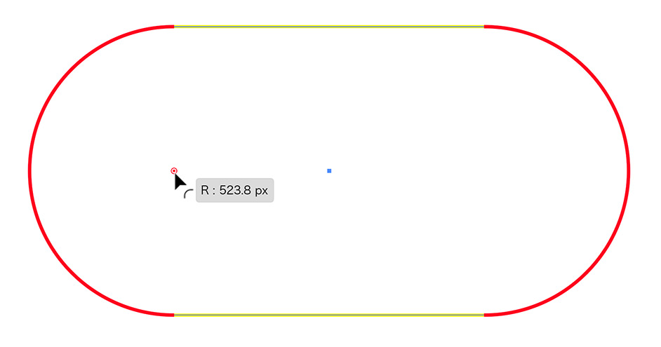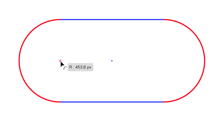 続いて、はさみツールでパスの上を4カ所クリックして切断したら、不要部分を選択してdeleteキーを押して削除し、左右の丸みを帯びた部分だけを残す(図24)。