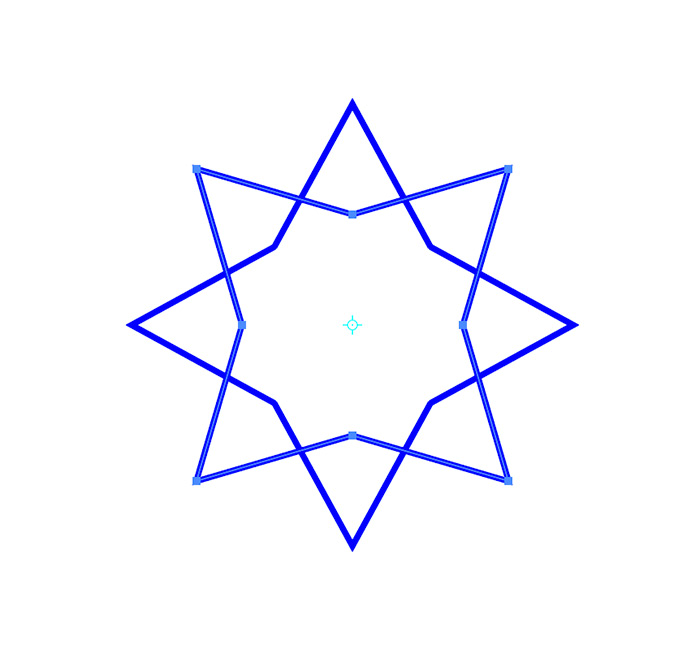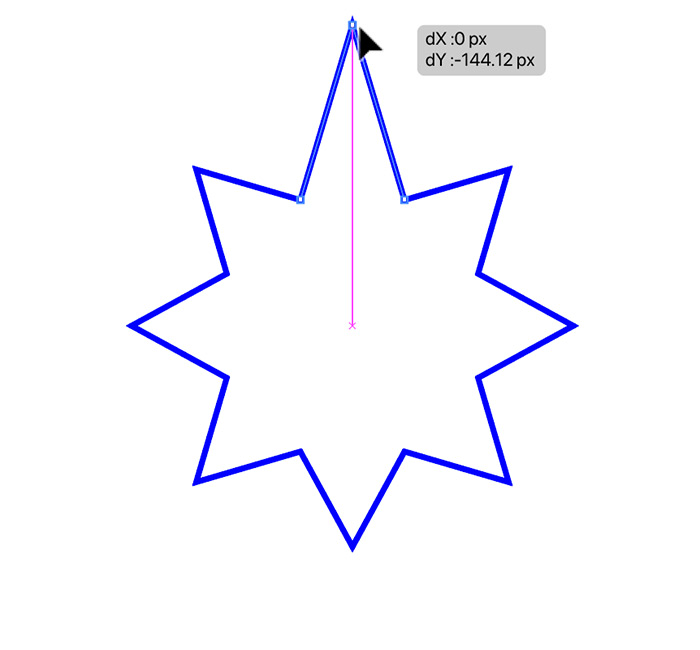 これらふたつの星形オブジェクトを選択したら、パスファインダーパネルの[形状モード:合体]をクリックして適用(図38)。shiftキーを押しながらダイレクト選択ツールで垂直方向と水平方向の頂点のアンカーポイントをドラッグして伸ばせば星のパーツが完成(図39)(図40)。