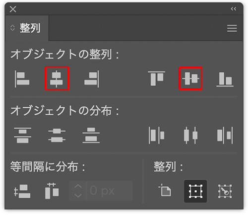 同様の手順で少し小さめの角丸長方形を作成したら、両方の角丸長方形を選択して整列パネルの[オブジェクトの整列:水平方向中央に整列]と[オブジェクトの整列:垂直方向中央に整列]をクリックして中心で揃えておく(図29)(図30)。