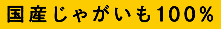 キャッチ「国産じゃがいも100%」部分の文字はインクのにじみを再現した「秀英にじみ角ゴシック金 B」(モリサワ)がベースに。商品ロゴの「すっぱ」の文字と馴染むように、同じルーツを持つ書体が選択された。小さめの文字サイズで使用するため、若干文字を太めて可読性を高める工夫がされている。