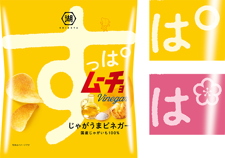 “リフレッシュ&リラックス”をコンセプトにリニューアルされた新パッケージでは、『すっぱムーチョ』の味わいや商品特性が、現代的な癒しを感じさせる文字や配色、ビジュアルなどで表現されている。デザインを担当したクリエイティブカンパニー「ネアンデルタール」によると「リフレッシュしたい。癒されたい。そんな現代人の気持ちに寄り添う商品であることを念頭にデザインしました。じゃがいもの旨味と絶妙なバランスのビネガー・梅の酸味、ブランドの持つ歴史と愛嬌、誠実さを体現するパッケージにフルリニューアルしています」とのこと。