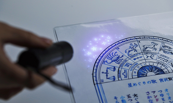 ハコペン 一つ目は、文字だけでなく枠や挿絵のようなイラストを描いているところが大きな特徴だと思います。二つ目にはブラックライトで光るものなど変わり種があるところ。見てくれる人をあっといわせたいという想いがあります。私が暗い気持ちで写経を始めてから、インクに出会った時の気持ちがパッと明るくなるあの感じが忘れられないんです。それを皆さんにも感じて欲しくて。