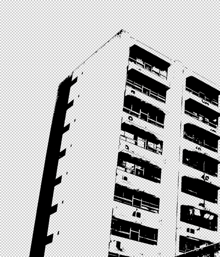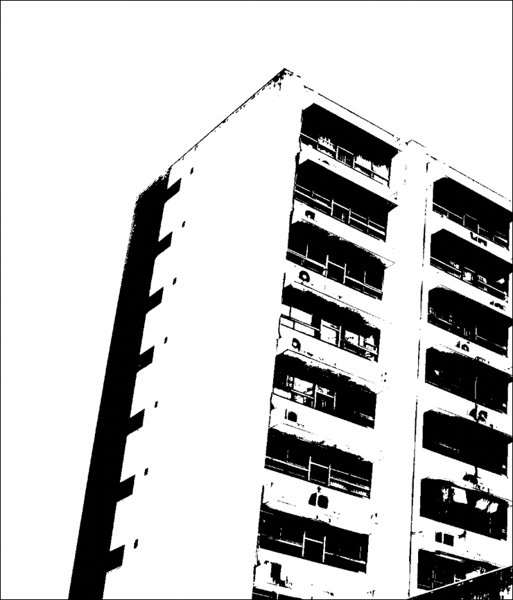 2.スパッタリング風グラフィック作成の前段階として建物の写真を2階調化する