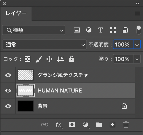 続いて、レイヤーパネルで先ほど配置したテクスチャのレイヤーのレイヤーサムネールをCommandキー+クリックして選択範囲を作ったあと、文字のレイヤーを選択してDeleteキーを押すと、文字にかすれやひび割れなどの質感をつけられる(図10)。