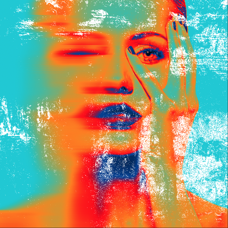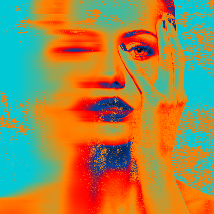 以上、Photoshopで顔の一部をぼかしたり、ポップアート風やグランジ風のかすれなどを表現して、アート性の高い雰囲気のあるグラフィックを作る方法でした。ぼかす箇所や色味を変えるだけでさまざまな表現が可能になるので、ぜひ試してみてください。