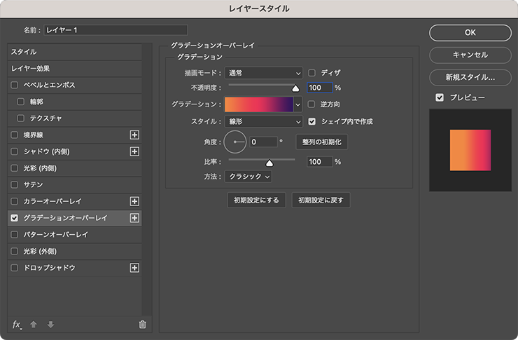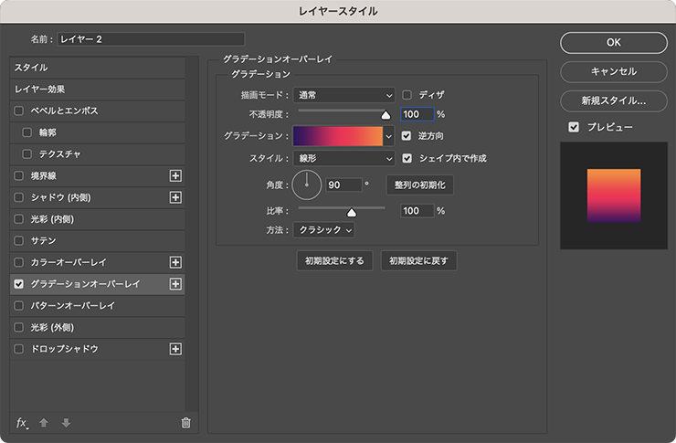2. レイヤースタイルで元となる模様にグラデーションをかける