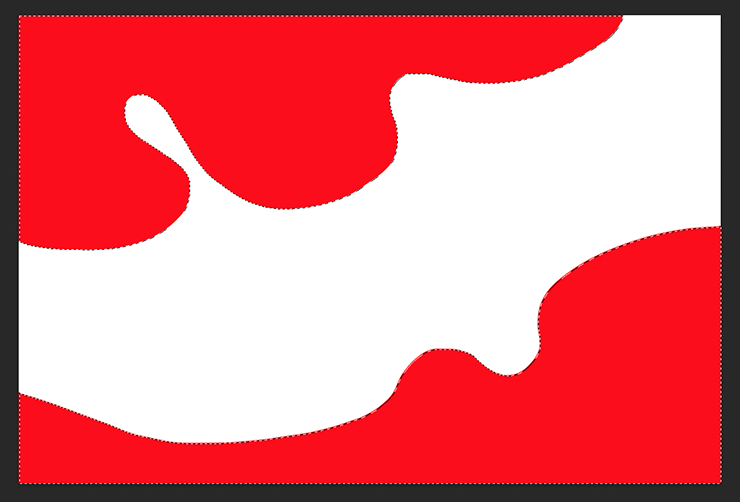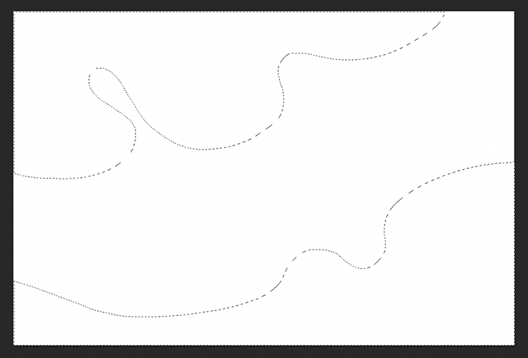 まずは新規ファイルを[幅:1200ピクセル]、[高さ:800ピクセル]、[解像度:350ピクセル/インチ]で作成。なげなわツールを選んでオプションバーで[選択範囲に追加]に設定したら(図1)、新規レイヤーを作成して滑らかな曲線の選択範囲を描く(図2)。