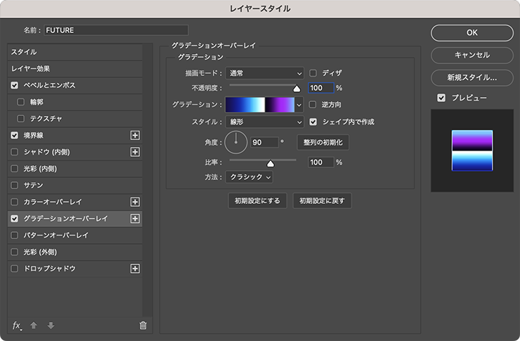 2. レイヤースタイルで文字にグラデーションをかける
