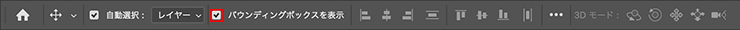 次に、表示メニュー→“スナップ”にチェックが入っているのを確認したあと(入っていない場合は選択してチェックが入った状態にしておく)、移動ツールを選択。オプションバーで[バウンディングボックスを表示]をオンにしたら(図3)、先ほど描いた長方形をドラッグ&ドロップしてカンバスの上に少しはみ出すよう配置する(図4)。