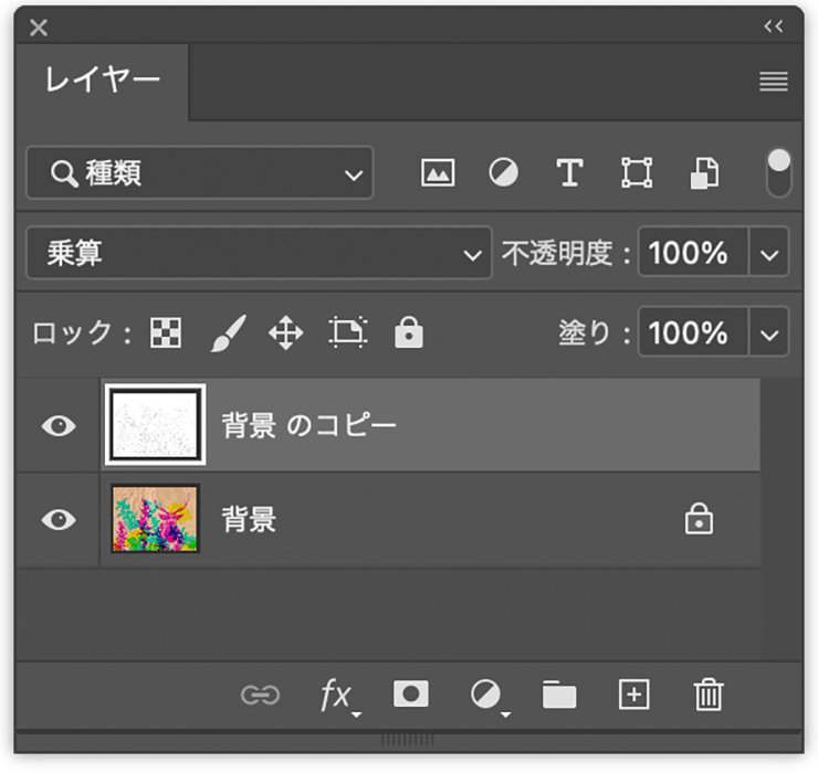 続いて、レイヤーパネルでそのレイヤーを[描画モード:乗算]に変更する(図11)(図12)。