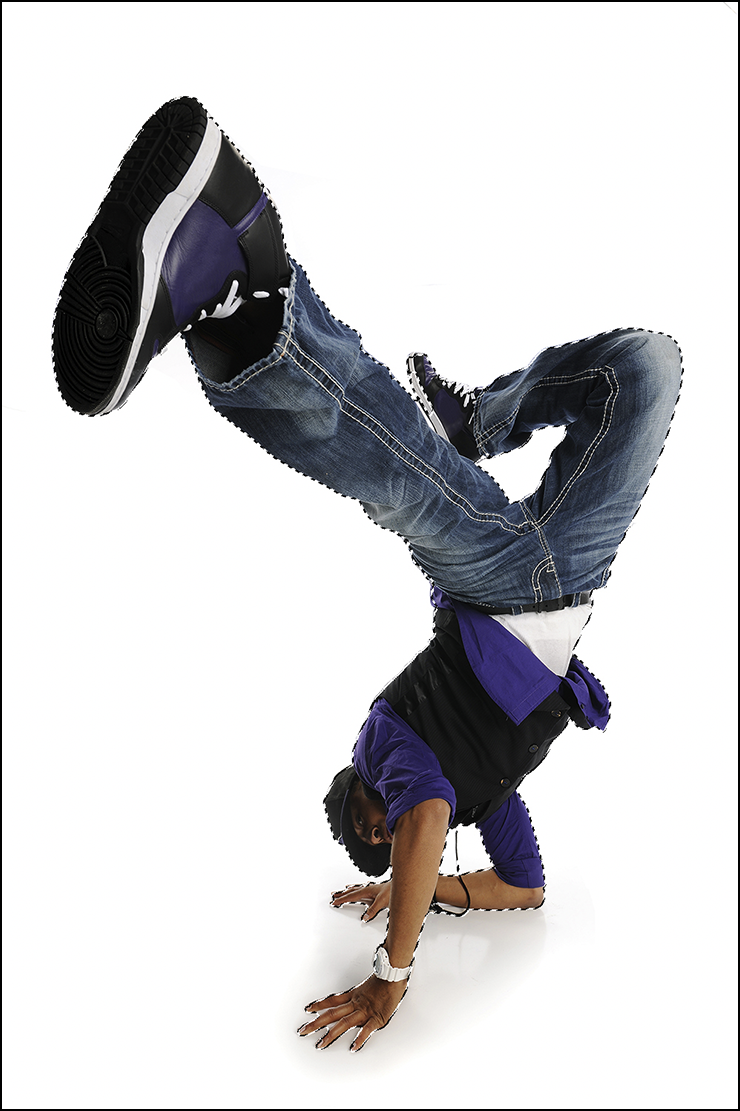 次に元となる写真素材を開いて(図2)、選択範囲メニュー→“被写体を選択”を実行して被写体の輪郭に沿って選択範囲を作成(図3)。