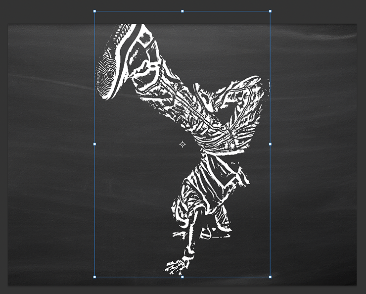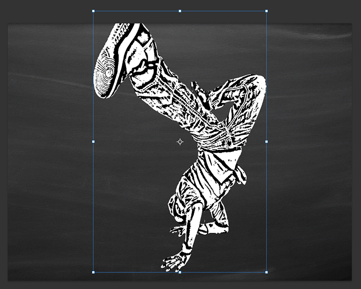 これをコピー&ペーストで黒板テクスチャの前面に配置したら、移動ツールを選び、バウンディングボックスのハンドルをドラッグしてサイズを調整する(図4)。